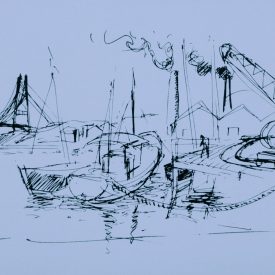 Martinho de Haro (São Joaquim, SC, 1907 – Florianópolis, SC, 1985), sem título, álbum “10 Desenhos de Martinho de Haro”, 1992, serigrafia, tiragem 006/100, 47,5x33cm.